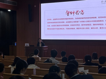党委副书记于颖对科研经费回流进行警示教育,提醒科研项目负责人自查科研经费回流涉及内容,杜绝类似情况发生。