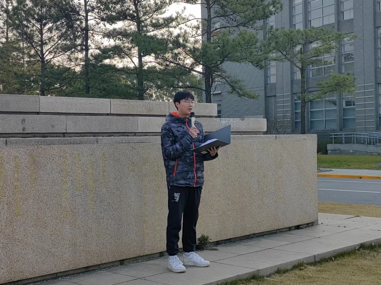2019级本科生左浩博同学在国旗下分享了自己走上科研路的故事。从大学生创新创业项目到机器人领域SCI期刊,不断在探索中挖掘兴趣、锻炼能力,以实际行动践行“同济天下、崇尚科学、创新引领、追求卓越”的新时代同济文化,激励同学们踔厉奋发、勇毅前行,以开放的心态和清醒的头脑,勇抓机遇,以青春年华书写璀璨的时代答卷。
