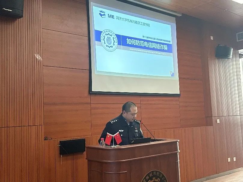 ME论坛第十七届第七场讲座在开物馆A101报告厅成功举办。本次论坛的主讲人为陆航警官,陆航警官为嘉定公安分局刑侦支队反电信网络诈骗中队民警,三级警长,中共党员。陆警官自2016年开始从事反电信网络诈骗工作,主要负责电信网络诈骗案件的侦办、打击及最新作案手法的研究及分析,有着丰富的一线实战经验以及专业技能,对于诈骗案件有着独到而深厚的理解,并常年利用业余时间开展防范电信网络诈骗宣传工作,与嘉定融媒体、嘉定电视台共同录制、拍摄过多档反诈宣传类节目及短视频。曾荣立个人三等功,荣获优秀公务员、区优秀法制讲师等荣誉,连续两年获得“区优秀志愿者”称号。
