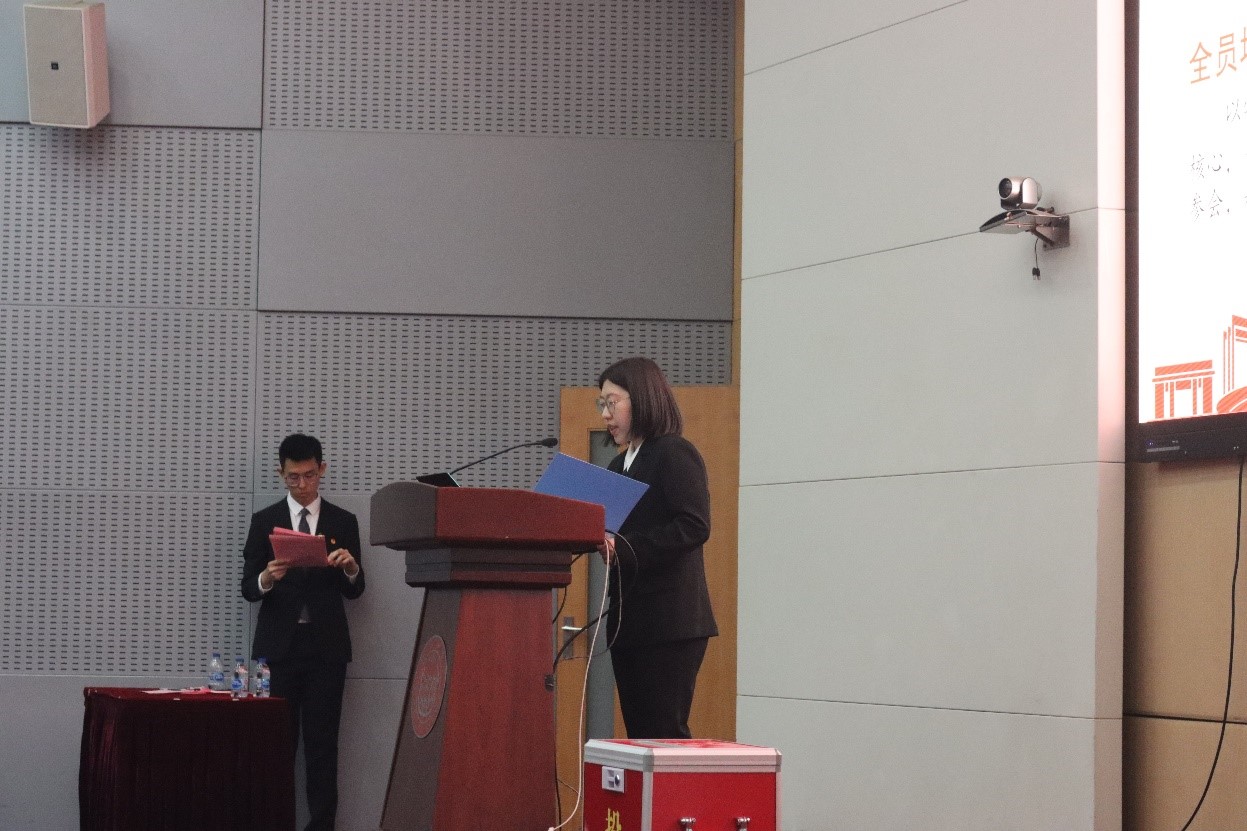 院学生会主席团成员刘铭琦向大会做《坚定理想信念,服务同学成长,建设砥砺奋进、根植同学的学生会》工作报告,回顾、总结学院第十一次学生代表大会以来学生会的工作情况,并从坚持党的领导、把握艰苦奋斗、牢记服务宗旨、紧跟时代步伐,建设政治可靠、砥砺奋进、根植同学、清新阳光的学生会等方面做工作展望。