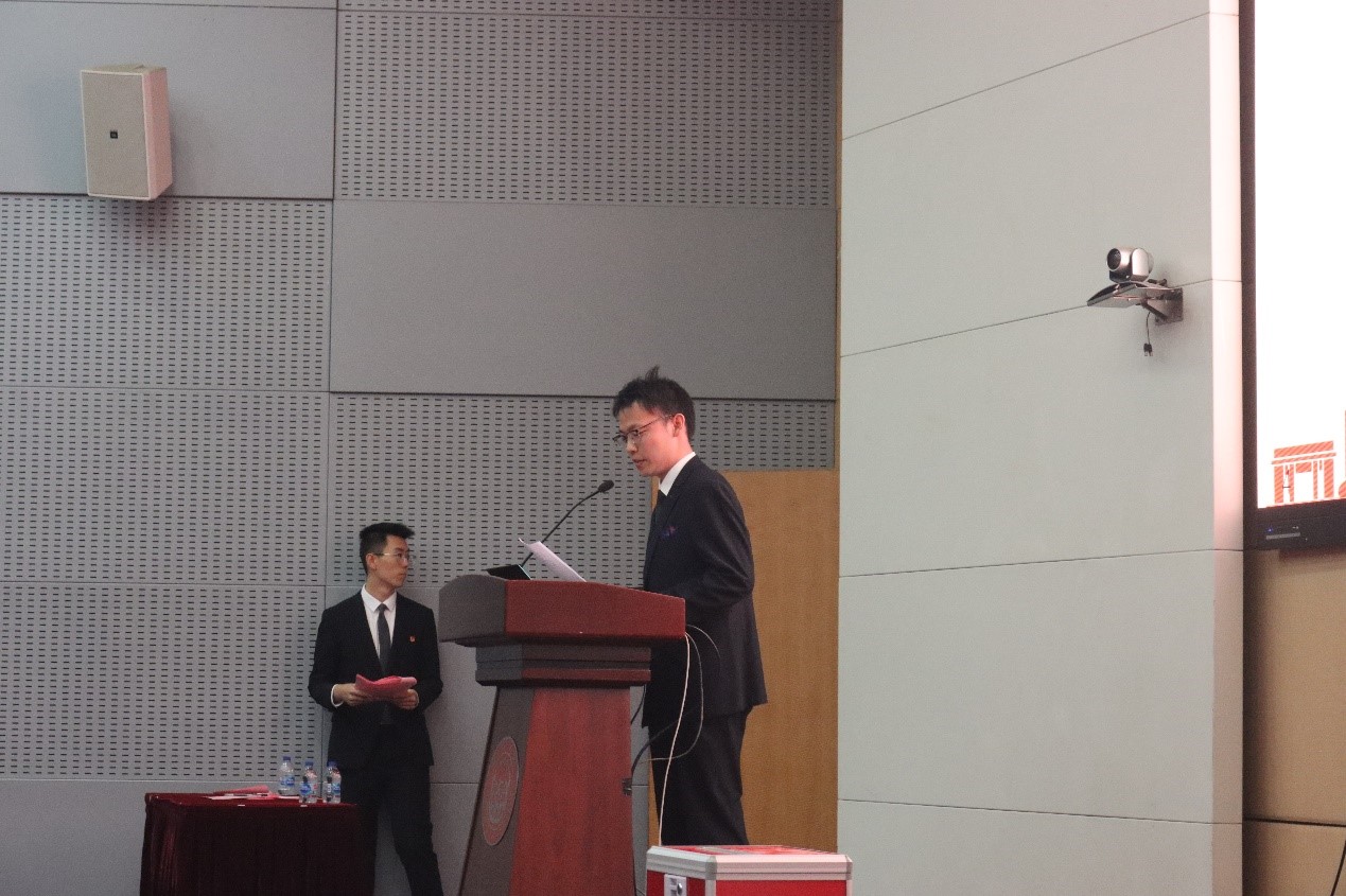 院研究生会主席团成员杨皓杰向大会做《锐意改革创新,助力同学发展,建设清新阳光、根治同学的研究生会》工作报告,回顾、总结了学院第四次研究生代表大会以来的工作情况,并从坚持党的领导、加强外部交流、牢记服务宗旨、彰显工作效能等方面做工作展望。