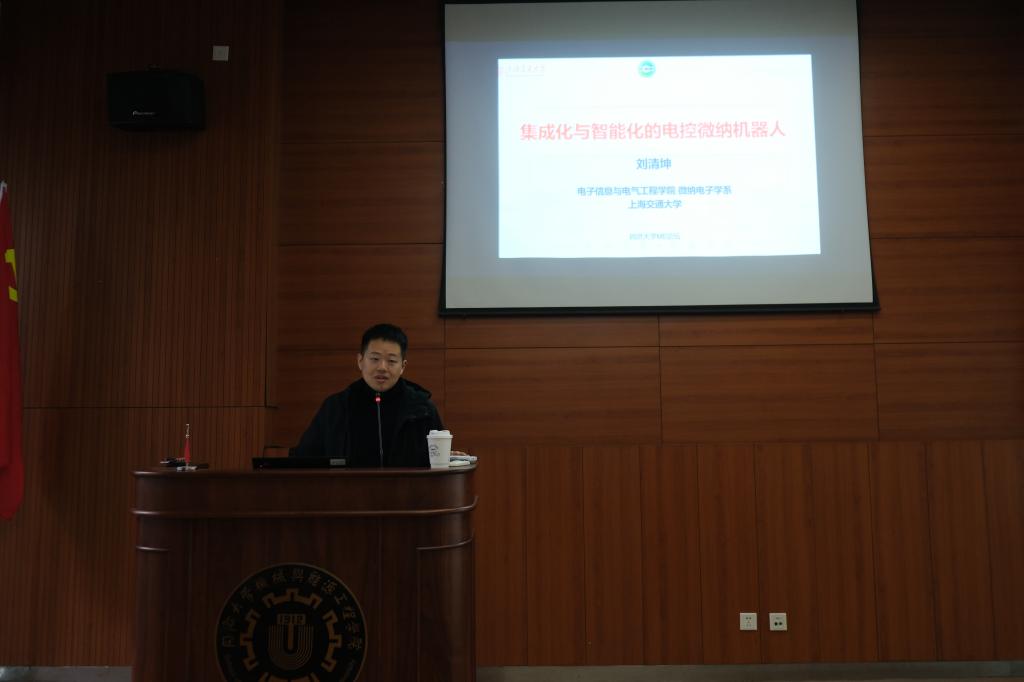 最后,刘教授对电控微纳机器人的介绍进行了概括,并欢迎感兴趣的与会同学加入到研究中来。与会同学就刘教授的分享提出了一些专业性的问题,刘老师也为大家进行了解答。