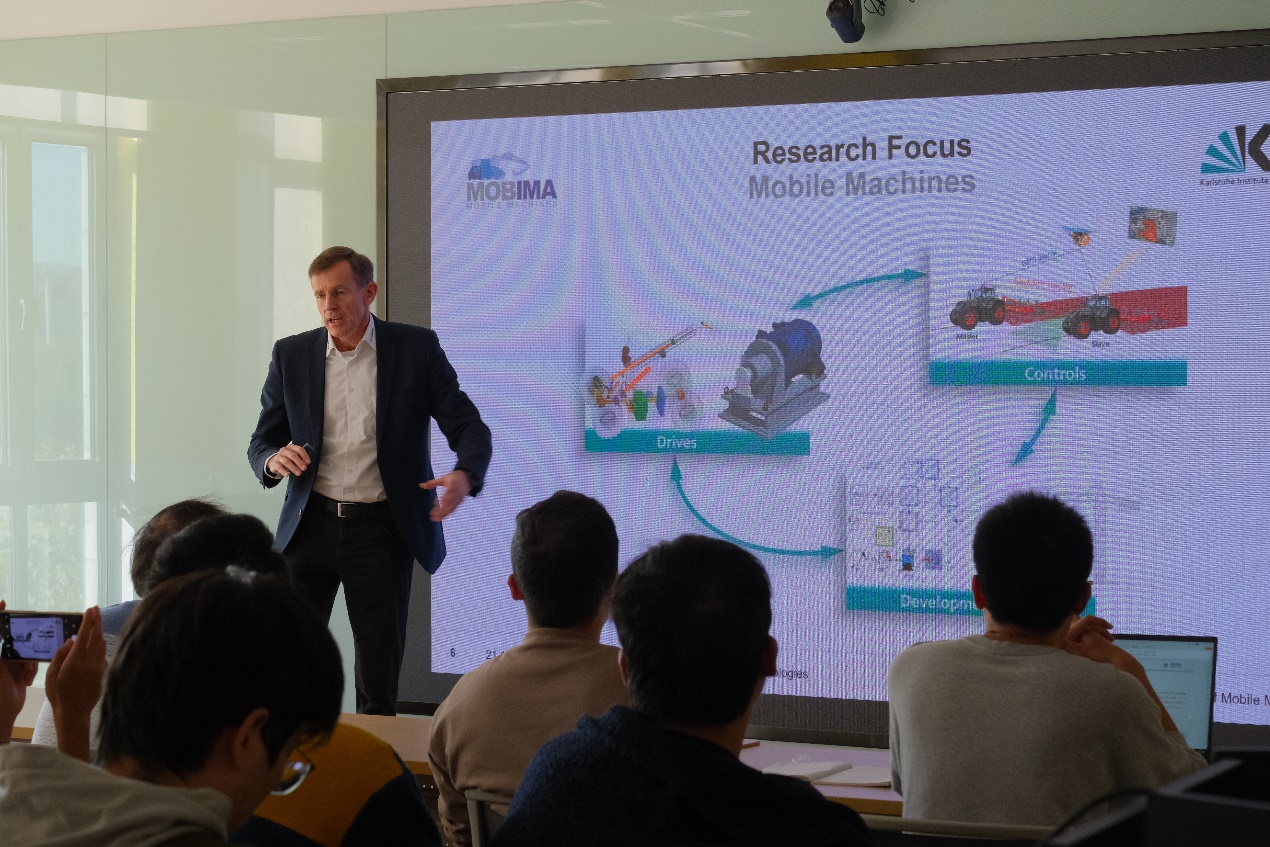 第一部分,Marcus Geimer教授对KIT和移动式机械研究所的基本状况进行了介绍。移动式机械研究所的主要研究方向为驱动、控制以及研发工具。