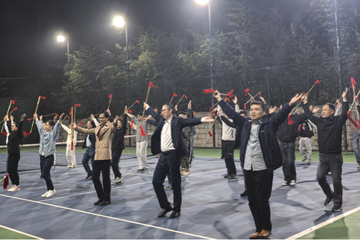 开班仪式后,师生党员共同学习体验大别山非遗文化“打花棍”,大家在老师指导下随着红色经典歌曲《八月桂花遍地开》的悠扬旋律舞起花棍,在红色律动中感悟革命年代的奋进力量,拉开了红色学习实践的序幕。