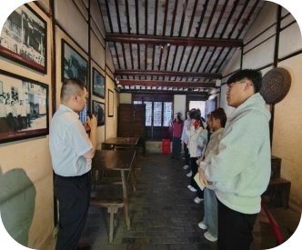 随后,同学们还参观了陈云故居。在这片充满历史气息的院落中,大家进一步了解了陈云同志的生活点滴,感受他简朴的生活作风和高尚的道德情操。故居内的每一件陈设,都似在诉说着陈云同志平凡而又伟大的一生,让同学们深受触动。
