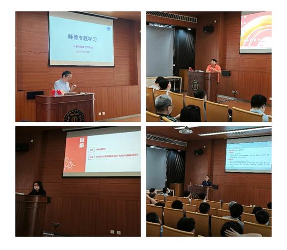 全院大会上,党委书记宋木生围绕师德专题带领大家进行了集中学习,院长卞永明就学院教学工作提出要求、党委副书记于颖结合学院案例开展全院警示教育的提醒、副院长刘广军就学院近期本研教学工作进行相关提示。