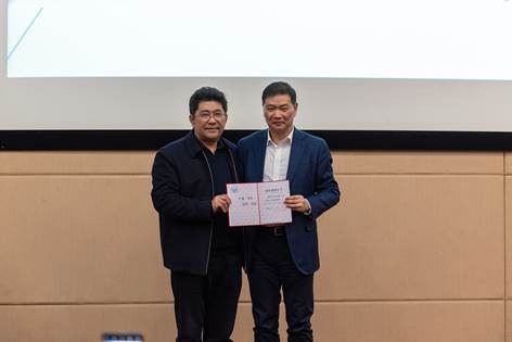 长期以来的合作、提供的支持和帮助表示感谢,欢迎俞宏福董事长成为“同济人”的一员,希望双方在未来的合作迈上新台阶。吕培明副校长为俞宏福董事长颁发聘书,并为其佩戴校徽。