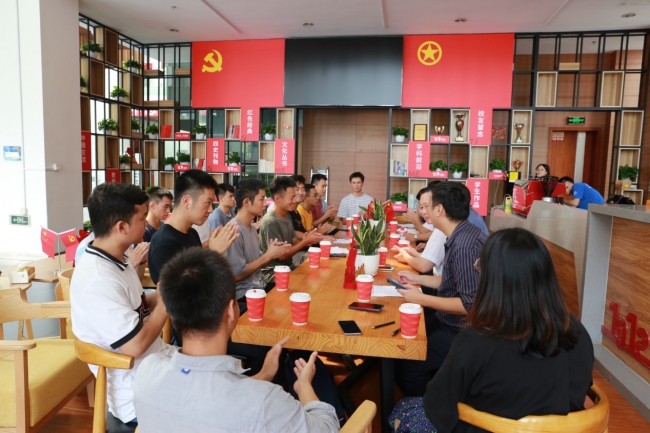 在开物馆一楼大厅举行书记院长座谈会----退伍大学生专场,嘉定校区党工委副书记覃文忠、麻豆视频