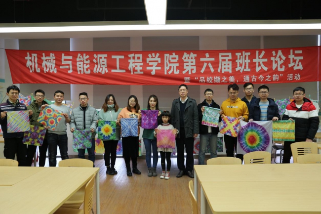 2019年12月21日,由班长联合会主办的学院第六届班长论坛暨“品绞缬之美,通古今之韵”活动在开物馆A310成功举办。院党委副书记宋木生、学工办副主任刘亚男以及各研究生班班长、班委参与了本次活动。