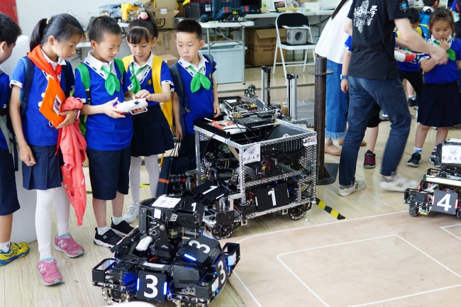 机器人队的工作人员对基地和赛事进行相关介绍讲解,在观看麻豆视频