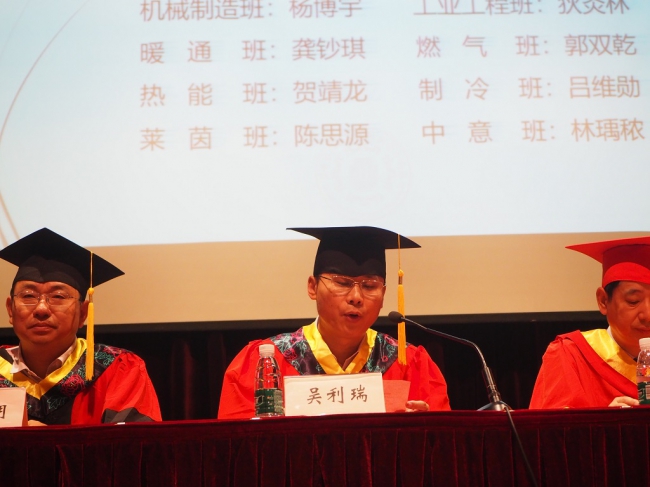 班主任代表、机械电子班班主任訚耀保教授,学生代表、制冷班毕业生代海斌同学,家长代表、机电班许少秋同学家长吴振慧女士也先后在典礼上进行了发言。