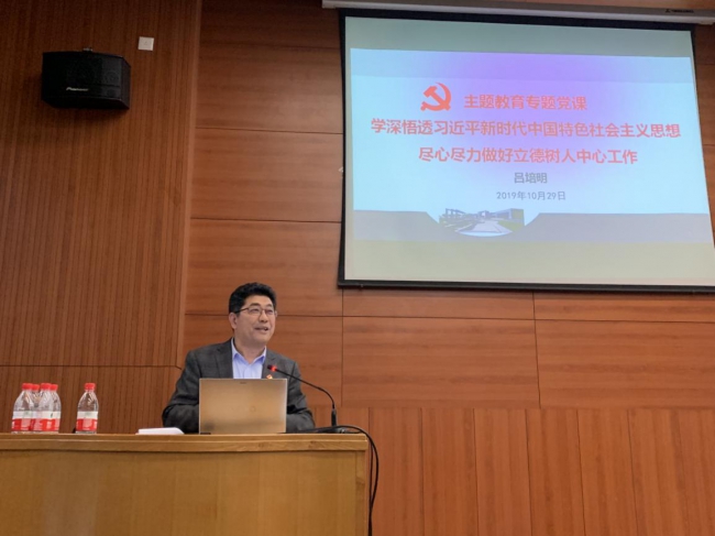 按照“不忘初心 牢记使命”主题教育工作部署,副校长吕培明于10月29日下午在嘉定校区开物馆101报告厅,以“学深悟透习近平新时代中国特色社会主义思想,尽心尽力做好立德树人中心工作”为题,讲授了“不忘初心 牢记使命”主题教育专题党课。麻豆视频