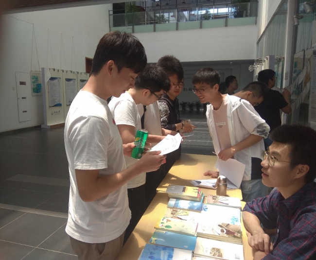 上午十一点,学院的大厅挂着两排明信片,上面是研会同学们手写的一道道选择题,题目涉及学校学院相关的知识。老师同学们可以自主选择问题进行问答,答对题目即可获得精美的笔记本,并且还有承载着校史知识的明信片留作纪念。刚挂好题目,路过的老师同学们都会驻足停留,开始对题目精心挑选,有因为一次就答对而开心的,有答不出题目便打开手机查找求助的,还有学霸更是对每段历史如数家珍。不少同学以课题组为单位,呼朋引伴。麻豆视频