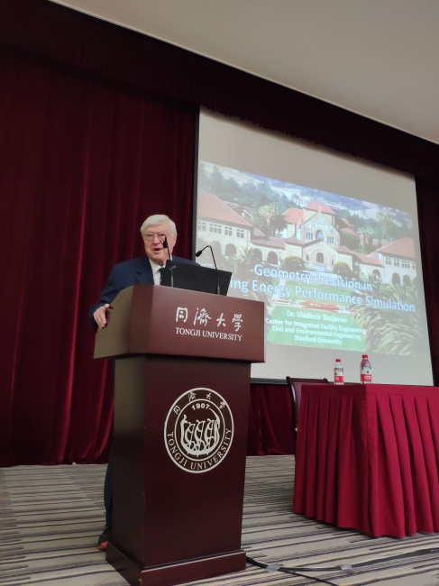 邀请,美国斯坦福大学教授——VladimirBazjanac做客同济高等讲堂,在四平校区逸夫楼一楼报告厅做了题为《过度简化建筑几何建模对基于Energy Plus的建筑能效仿真的影响》的讲座。