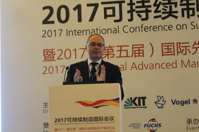 与德国卡尔斯鲁厄理工学院的合作典范,双方依托AMTC获得中国国家科技部和德国教研部在智能制造/工业4.0领域的共同资助,未来将开展更深层次的中德合作科研,ICSM会议也是研究成果推广的重要渠道”。中德学院Tomas Willems副院长在致辞中给与了AMTC的发展和中德制造领域科研合作充分肯定和赞扬。德国工程院院士弗莱舍教授代表AMTC做了《关注中国市场特点的研发设计与生产》的主题演讲,报告对中国市场的需求特点进行了分析,提出智能制造定制化设计、制造全流程解决方案并介绍了中德政府科技合作项目i4TP的重点研究内容。德国意志高驰咨询公司做了“中国创新的困惑—添加缺失的部分”的主旨演讲,报告重点介绍了如何为创新提供框架、制定创新产品、服务和商业模式的个性化路线图,如何帮助企业将创新中缺失的部分进行添加等内容。
