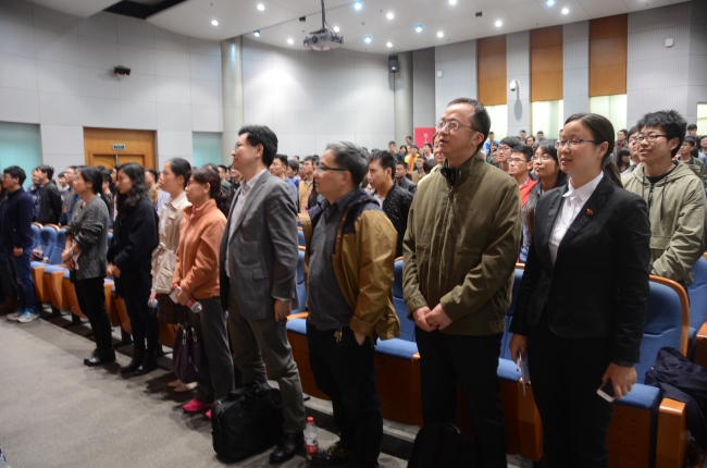 4月26日晚,研究生党总支在嘉定校区同心楼224报告厅召开党员大会,党委副书记李红主持大会。