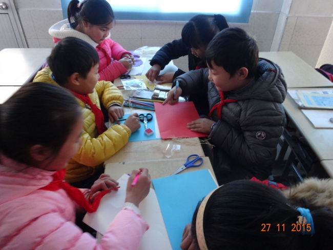 活动伊始,志愿者们向小朋友和家长们介绍了学校、学院以及热传递志愿者中队,随后正式进入课堂。志愿者们向小朋友们展示了自己提前制作的“我爱我家”剪贴画,并向小朋友们发放剪贴画制作材料,带领小朋友一起动手制作以“我爱我家”与“感恩”为主题的剪贴画。在近一个小时的制作过程中,小朋友们充分发挥自己的想象力与创造力,将自己对父母、老师、祖国的爱与感恩通过画作表现出来,并一一上台展示。