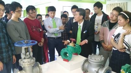 在参观过程中,正丰阀门集团技术中心经理与研发部门主任为同学们详细介绍了正丰集团研发生产的用于暖通、给排水和消防方面的阀门产品,如各种调节阀、截止阀、防水锤阀、电动水力平衡阀等,并为同学们讲解了其工作的原理与产品的特点。正丰阀门追求高精度、高可靠性的控制,在暖通水系统阀门、水力平衡调节控制、水系统集成服务方面具备较深积累,将积极参与麻豆视频