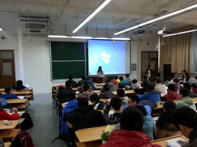 会上分享自身成长经历的学长、学姐分别是:11级学姐陈奕婷,12级学长黄皓,12级学长唐铭。陈奕婷学姐介绍了今年保研申请的通过率,申请保研的流程以及她本人所在热能专业的概况。接下来进行分享的是黄皓学长,他从留学德国的优势,留学申请流程,语言准备工作等方面阐述了留学德国的大致情况,新生热情高涨。最后发言的唐铭学长则为新生集中讲述了德语强化班的概况,同时也穿插了有关实习,工作申请的经验。