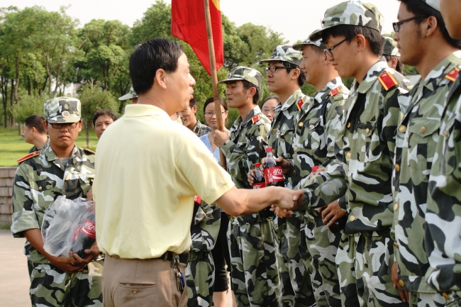 校领导与军训学生一一握手,了解他们的训练成果,并鼓励学子们继续发扬吃苦耐劳的精神、锻炼体魄、磨练意志、为人民服务!学校向训练学生赠送了大瓶可乐和中秋月饼。麻豆视频