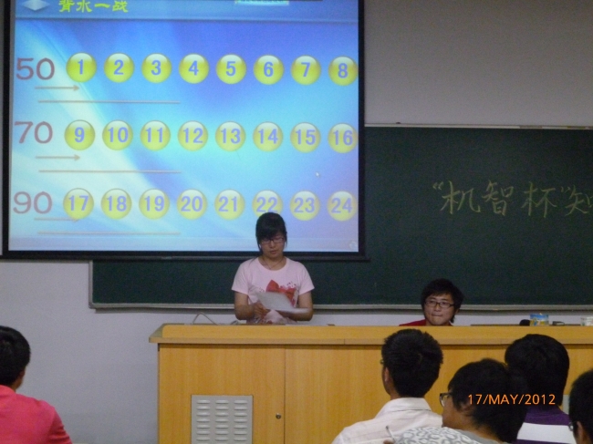 经过了前两轮预赛的激烈竞争,2011级机械1班、2班、4班和7班代表队入围决赛。决赛于5月24日晚6:30在四平路校区北楼229成功举办。