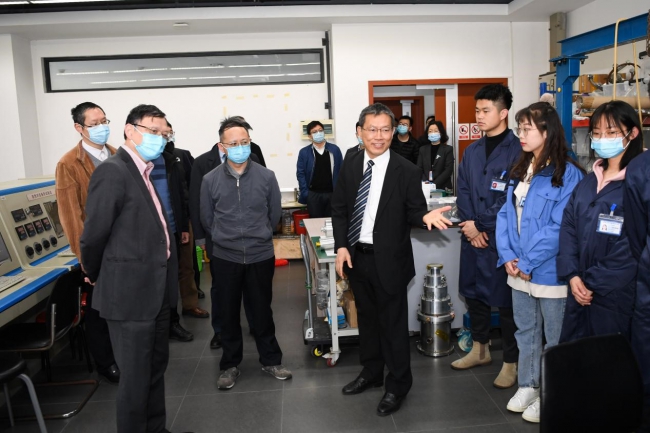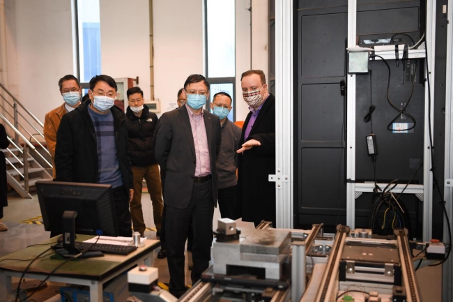 调研坐谈会前,方守恩一行参观了学院制冷实验室、先进制造技术实验室(AMTC)、智能工程机械实验室(SCMC)、智能绿色工程创新基地(SEIL)等,各实验室、基地负责人介绍了有关情况。