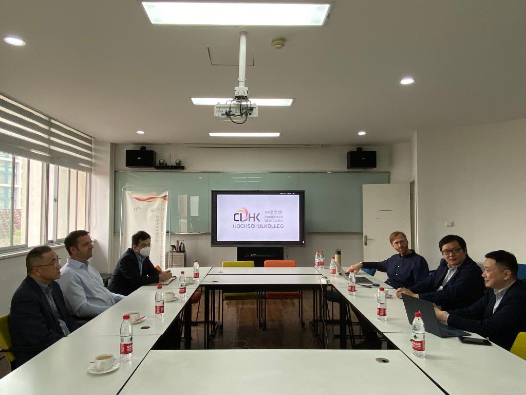 与波鸿鲁尔大学机械工程和能源工程领域硕士双学位协议续签及学分互认,智能与绿色工程创新实践基地的建设与规划,数字化制造、数字孪生与能源系统领域深化合作等方面进行了深入交流。