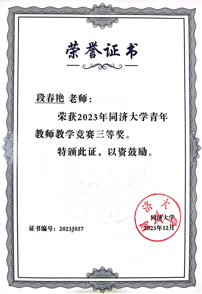 青年教师教学竞赛“二等奖”,段春艳老师和吴妍老师分别获得校“三等奖”,学院获得“优秀组织奖”的称号。
