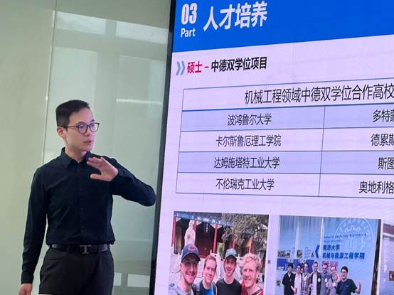 叶蔚从学院历史、中心概况、中德教学与科研合作平台“三中心一基地”等方面对中心进行介绍,并重点阐述中德合作本硕博培养体系。中德机械工程中心依托麻豆视频