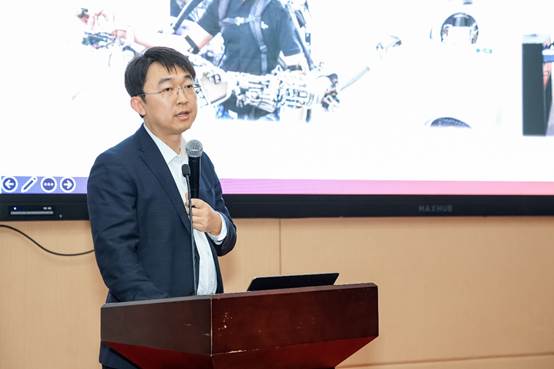 国防科技大学智能科学学院卢惠民教授的报告由宋然教授主持,卢惠民教授以《特种机器人人机混合智能操控》为题探讨了人机协同智能操控的关键挑战与最新进展,介绍了团队在复杂环境机器人智能感知与自主控制、人机混合智能操控等方面的思考探索和最新进展。