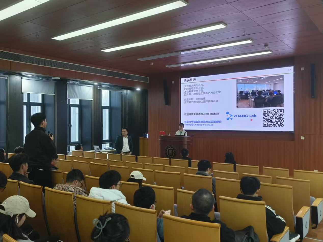 来访期间,张贺东教授进行了题为《Extending Lifespan with Nanotechnology and IT: From Tribology to Healthcare》的学术报告,介绍了摩擦学在材料表面相互作用中的应用、脉搏波形及其测量方法以及如何实现无校准传感器输出信号转换为血压数据的技术进展。讲座结束后,张教授与在场师生进行互动交流,耐心解答提问。