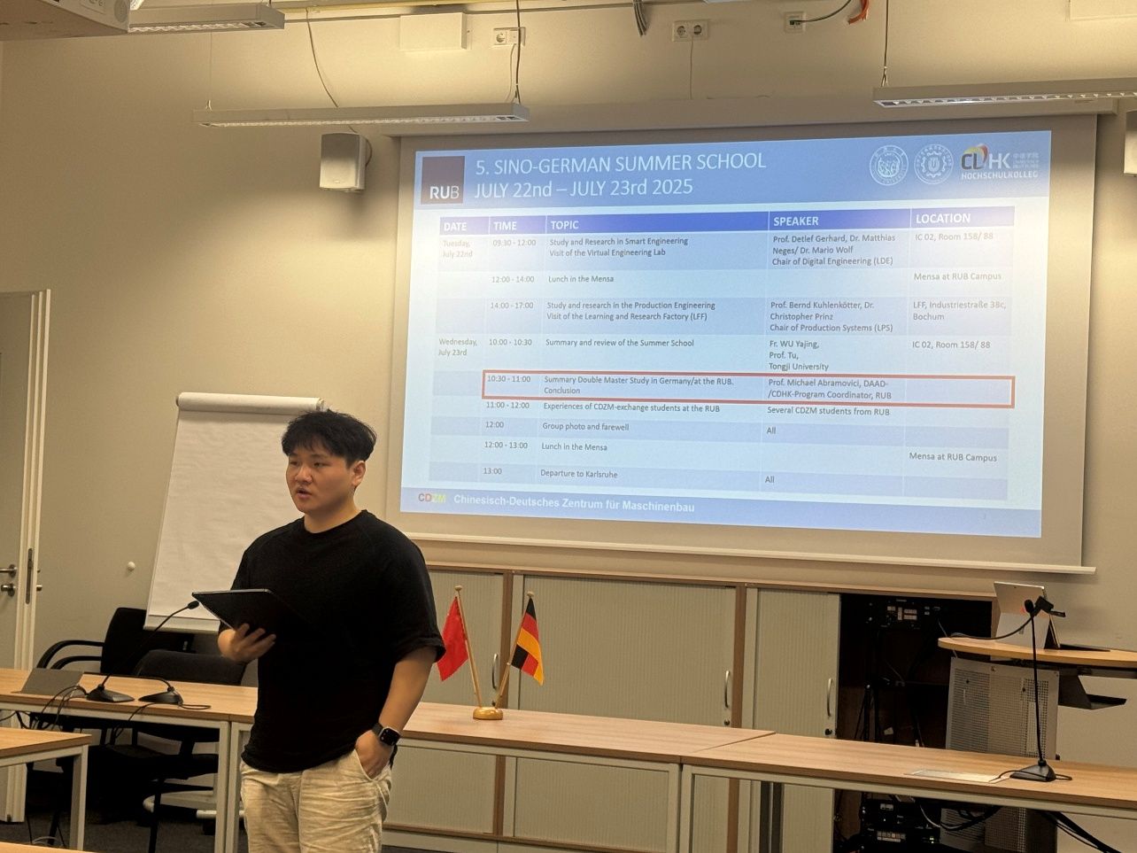 在闭营仪式上,团队成员代表分享本次德国行的心得体会。目前正在波鸿鲁尔大学攻读双学位的麻豆视频