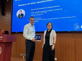 师生带来本学期第二场“ME”论坛。讲座的主题为《IGTE城市脱碳技术研究》,深入介绍了告将探讨在高密度城市区域中利用隧道地热能的研究工作,在可用地表空间受限的条件下,提出创新的地下能源利用方案。随后将介绍支持再生热能技术的高性能热能储存系统,展示其在建筑与城市层面的应用潜力。此外,报告将阐述新一代低温区域供热网络与冰蓄能技术的发展,这些系统为实现城市脱碳提供了关键路径。与此同时,Stergiaropoulos教授还将分享数据中心冷却的仿真优化研究,展示数字化方法在提升能源效率与运行灵活性方面的重要作用。之后,在场师生进行了热烈的讨论。最后暖通空调研究所所长李峥嵘教授代表学院向Stergiaropoulos教授颁发了纪念品。