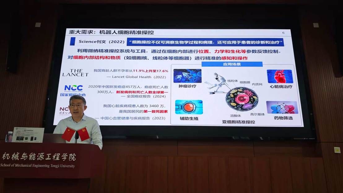 来访期间,双方就机器人领域合作进行交流研讨,计划以此次访问为契机,逐步推进机器人领域各层次中加合作。此外,孙钰院士进行了题为《Medical Robotics for Cell Surgery – Science & Applications》的院级高等讲堂,介绍了机器人微纳操控的演进历程以及该领域面临的挑战、发展机遇、近期取得的代表性进展,探讨了针对化疗耐药性肿瘤的机械纳米手术方案。讲座结束后,孙钰院士与现场师生进行互动,答疑解惑。