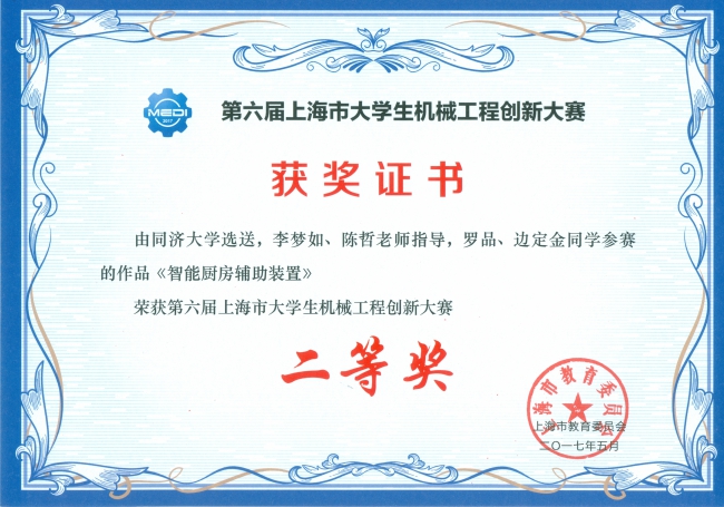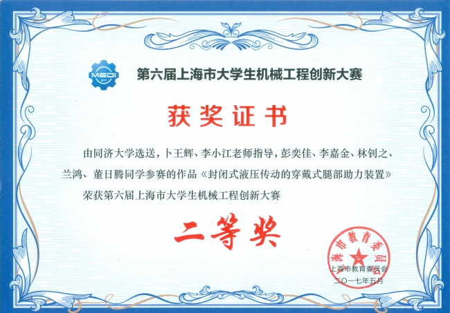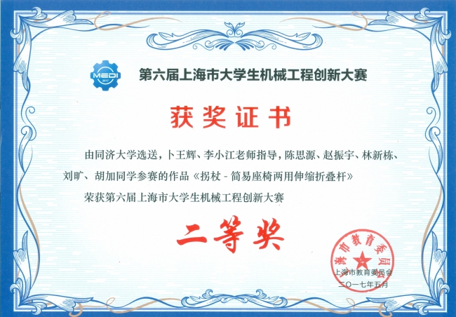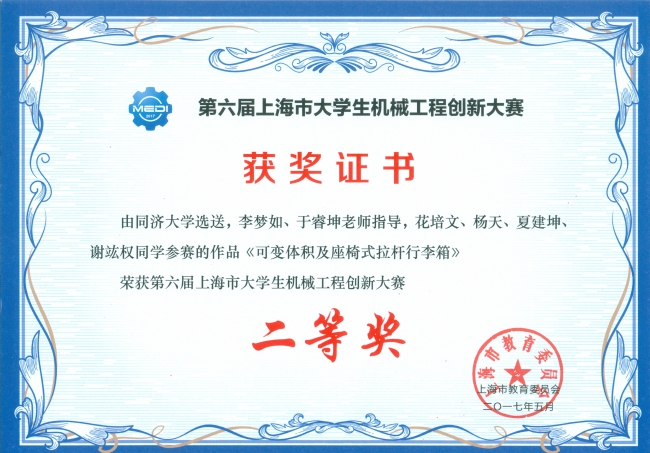 获奖荣誉 当前位置: 麻豆视频 - 学生园地 - 科技创新 - 获奖荣誉 - 正文 2017机械创新大赛获奖证书 浏览量:来源: 时间:2018-05-09 二等奖 封闭式液压传动的腿部助力装置 二等奖 拐杖-简易座椅两用伸缩折叠杆 二等奖 可变体积及座椅式拉杆行李箱 二等奖 智能厨房辅助装置