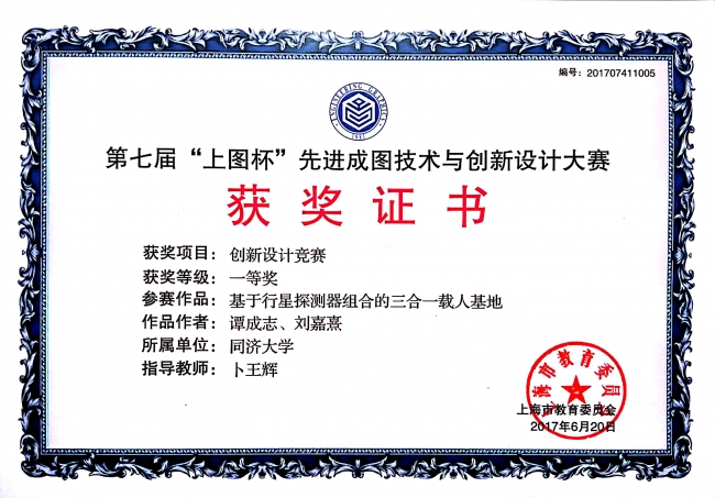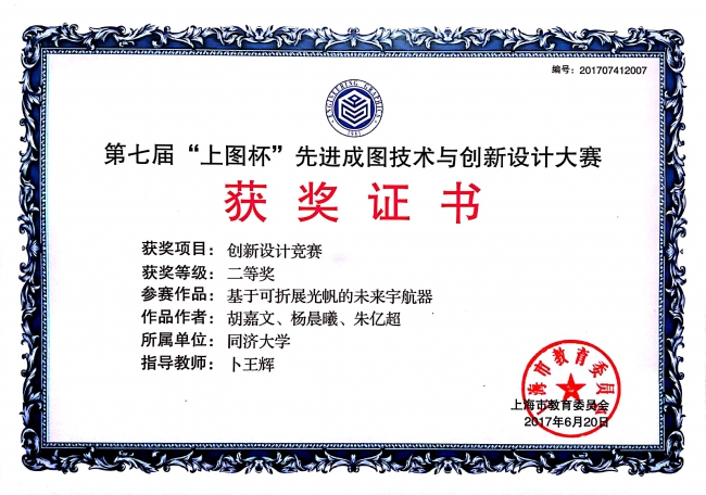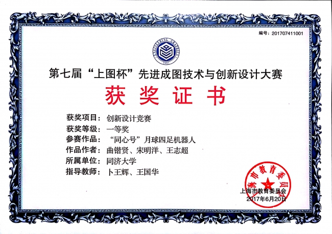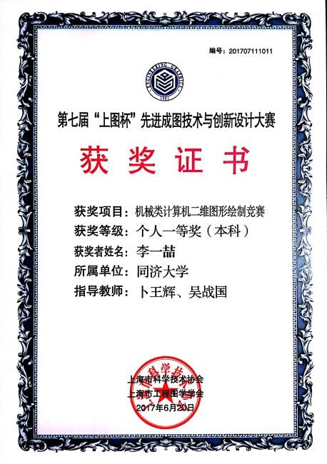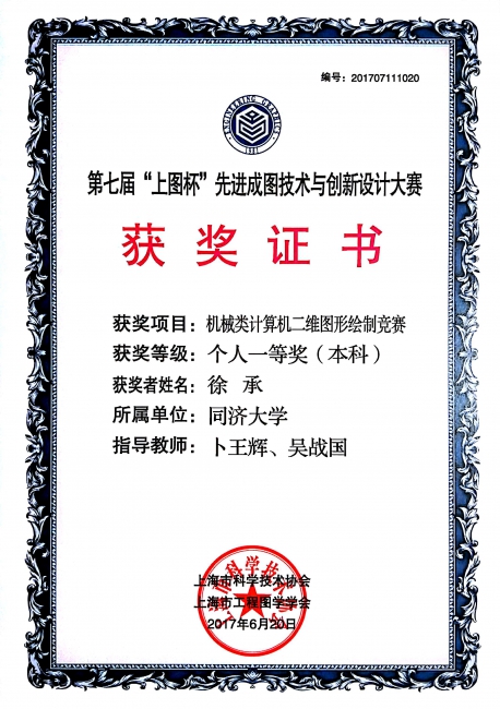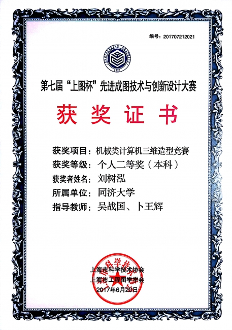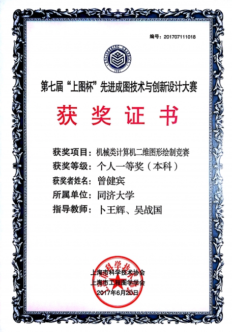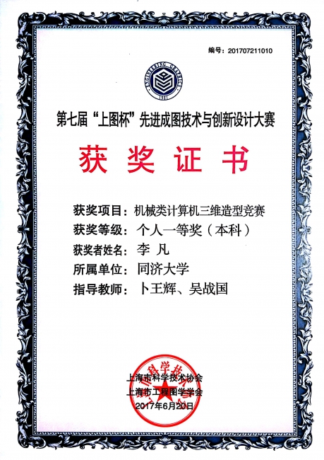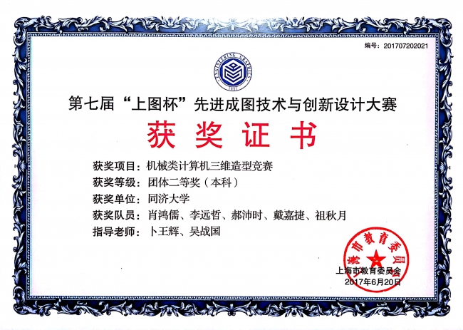 2017第七届“上图杯”先进成图技术与创新设计大赛获奖证书