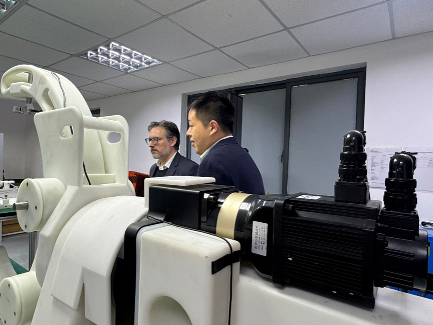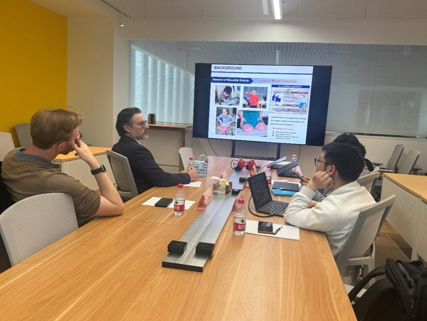 During the exchange meeting, Prof. Junying Min, Prof. Yichao Tang and Asso. Prof. Haisheng Xia introduced the international cooperation of SME, the research focuses of of intelligent medical robotics group and wearable robotics group, both parties discussed the cooperation in robotics and other related fields. Afterwards, Prof. Sami Haddadin visited the laboratories in the fields of intelligent manufacturing and robotics of SME.