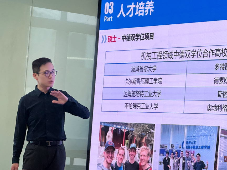 Asso. Prof. Ye Wei introduced CDZM and the Sino-German talent cultivation. Relying the Sino-German platforms of Tongji University, CDZM focuses on intelligent technology and green development of the Sino-German Joint Research Center (Tongji University), and carries out high-quality talent cultivation, so as to implement the Sino-German 2.0 strategy of Tongji University. The delegation was then led by Assi. Prof. Christopher Ehrmann on a tour of the AMTC.