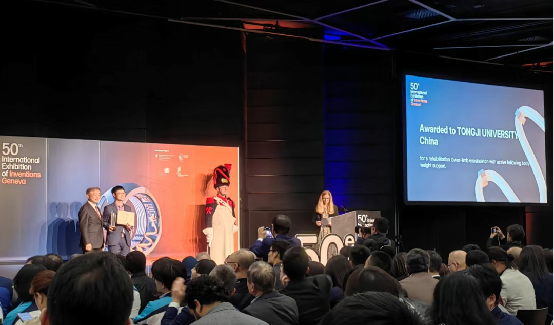 On 13th April 2025, at the 50 th International Exhibition of Inventions of Geneva, the Rehabilitation Lower-limb Exoskeleton with Active Following Body Weight Support and the Light Wing vision large model wearable glasses, which were independently researched and developed by the team of Prof. Zhijun Li’s team (dean of School of Mechanical Engineering Tongji University), were awarded the Gold Award and the Silver Award respectively, in a strong breakthrough among the 2,000 state-of-the-art inventions from nearly 40 countries and regions in the world. Among them, the Rehabilitation Lower-limb Exoskeleton with Active Following Body Weight Support won the ‘Special Invention Award’ (only 1% of the awards) for its breakthrough technological innovation.