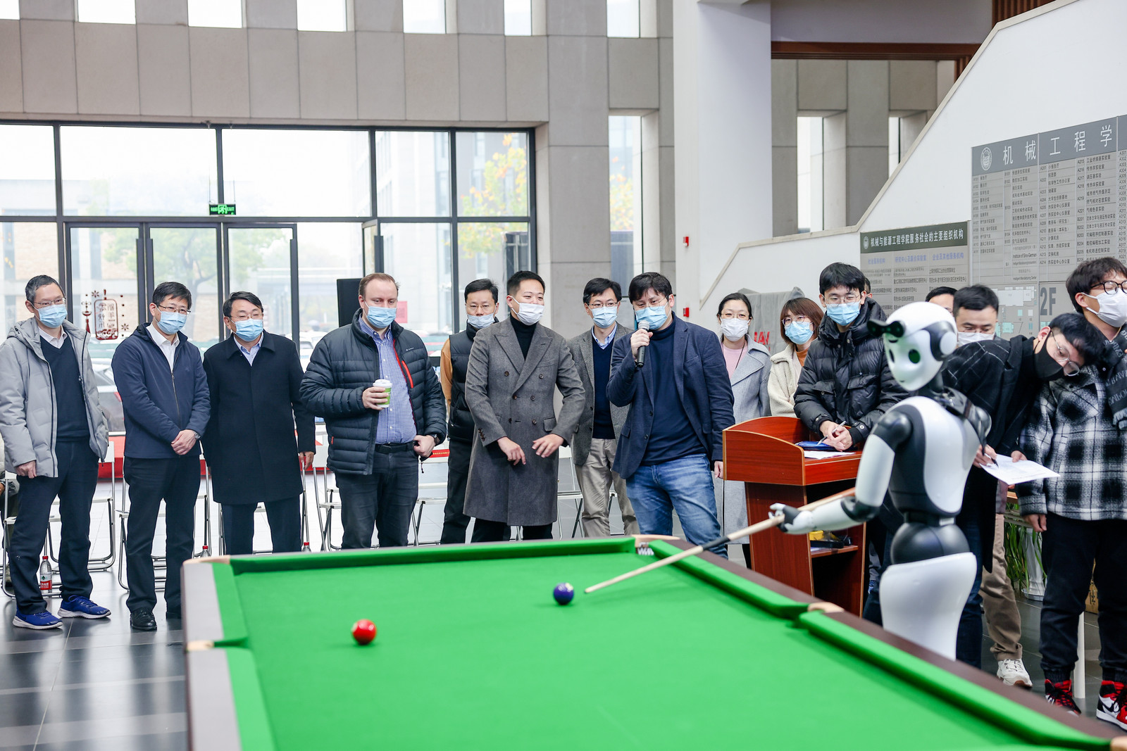 主办,达闼机器人股份有限公司和德西福格汽车零部件集团协办。5支参赛队伍通过设计开发智能程序,实现人机互动,操控现场机器人完成一系列导航、目标球识别、位姿计算和击球等台球动作,进行积分争夺。最终,由机械设计制造及其自动化专业3位学生组成的“艾黑客海易希方方土队”获得了本次比赛的冠军。